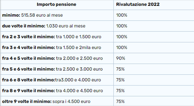 Gli assegni previdenziali più alti verranno rivalutati nelle seguenti misure: