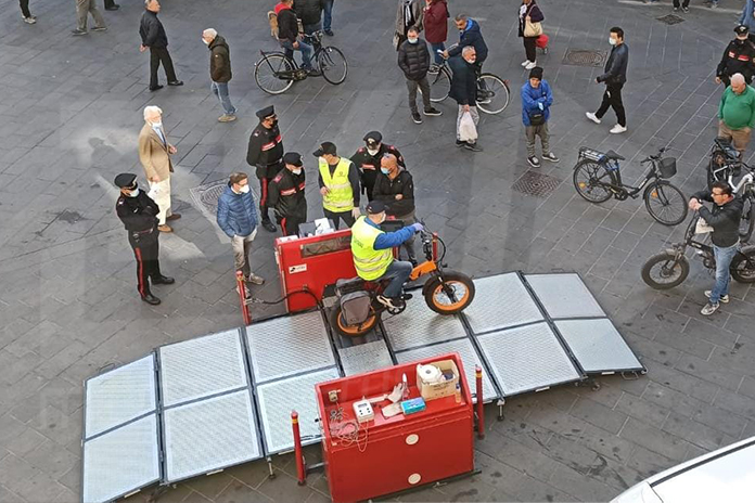 In piazza Diaz, è stata allestita una postazione per effettuare controlli sui velocipedi con pedalata assistita in circolazione sul territorio comunale.
