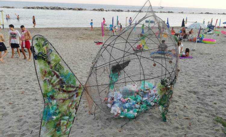 Due inedite creature marine abitano da circa una settimana la spiaggia di Pioppi. Si tratta di Kappa e Dalì, rispettivamente una tartaruga marina e un pesce mangia-rifiuti, a cura del collettivo Refuse Factory. L’opera è stata presentata al pubblico lo scorso 20 luglio, in occasione dell’inaugurazione del quarto Festival della Dieta Mediterranea di Pioppi, organizzato da Legambiente in collaborazione con il Comune di Pollica, il Parco Nazionale del Cilento, Vallo di Diano e Alburni e la Regione Campania.