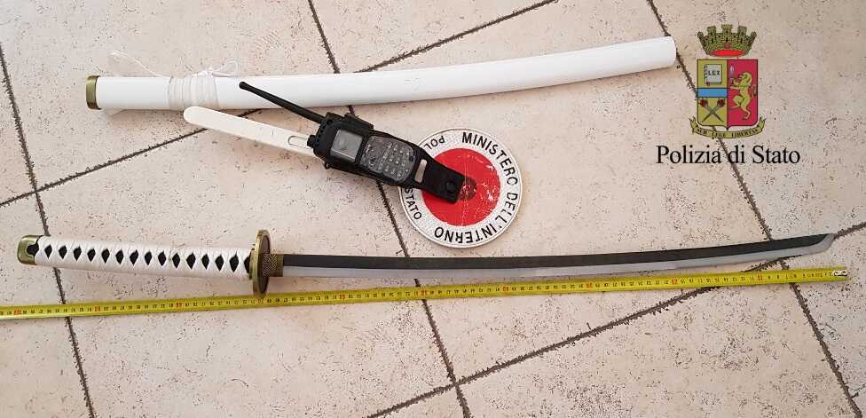Gli agenti del commissariato di Ischia lo hanno fermato per un controllo mentre era alla guida della Ford di sua madre. Il giovane, originario di Genzano, era nei pressi della banchina olimpica del Porto di Ischia. Insieme a lui, alcuni amici. Ai poliziotti che procedevano al controllo, il giovane ha poi consegnato 15 grammi di hashish. Nella sua auto è stata poi rinvenuta una katana, tipica arma giapponese, lunga 97 centimetri, di cui 66 di lama.