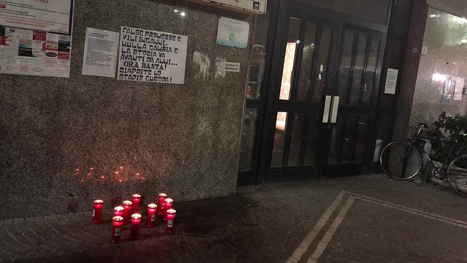 Un modo per dire che il calcio in città è morto. E lo è nonostante il Real Poggiomarino promosso lo scorso anno in Eccellenza, perché al momento non potrà utilizzare lo stadio Europa, quello di casa che dovrebbe restare ancora chiuso anche in questa stagione. Sembra puntare a dire proprio questo la protesta dei tifosi poggiomarinesi avvenuta nella notte davanti al Comune dove sono stati piazzati dei lumini votivi.