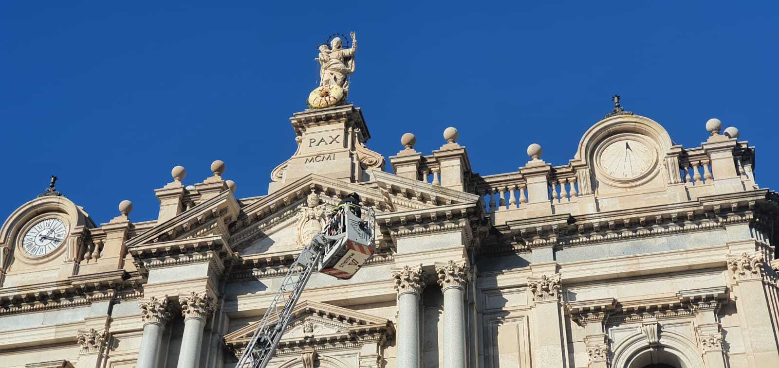 Una corona di oltre mille rose, donate dal Consorzio Produttori Florovivaisti Campani e Gaia Florum, è stata deposta dai Vigili del Fuoco ai piedi della statua della Madonna del Rosario posta sulla facciata del Santuario di Pompei. Si rinnova il tradizionale appuntamento del 1° gennaio. Una folla di fedeli ha assistito alla cerimonia che caratterizza la “Solennità di Maria Santissima Madre di Dio”. Dopo la Santa Messa celebrata alle 11.00, in Basilica, da Monsignor Tommaso Caputo, si è rinnovato il rito dell’omaggio floreale alla statua della Madonna del Rosario, inaugurata il 5 maggio 1901 e dedicata, per volontà del Beato Bartolo Longo, alla pace universale.