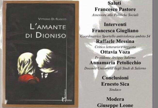 All’iniziativa, promossa dall’Amministrazione Comunale, dopo i saluti dell’Assessore alle Politiche sociali Francesco Pastore, interverranno, insieme all’autore, Francesca Giugliano (Coordinatrice Sportello antiviolenza Ambito S4), Raffaele Messina (critico letterario e saggista), Ottavia Voza (Presidente Arcigay Salerno) e Annamaria Petolicchio (docente Università degli Studi di Salerno). Conclusioni affidate al Sindaco Ernesto Sica. A moderare l’incontro il giornalista Giuseppe Leone.