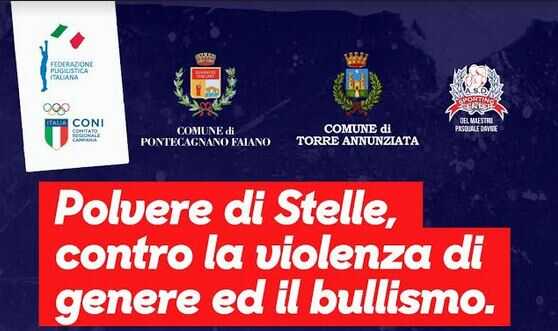 Una giornata dedicata ai temi del bullismo, della violenza di genere ed allo sport. Questo il senso dell’evento “Polvere di Stelle” presentato questa mattina nel Palazzetto dello Sport di Pontecagnano Faiano. Un progetto organizzato dall’amministrazione e sostenuto dalla Federazione Pugilistica Italiana, dal Coni Comitato Regionale Campania, dal Comune di Torre Annunziata e dall’ASD Sporting Center. A chiudere il cerchio l’incontro Internazionale di Pugilato Italia VS. Irlanda alle ore 18, il cui match di ritorno si terrà domenica 19 maggio nella città di Torre Annunziata.