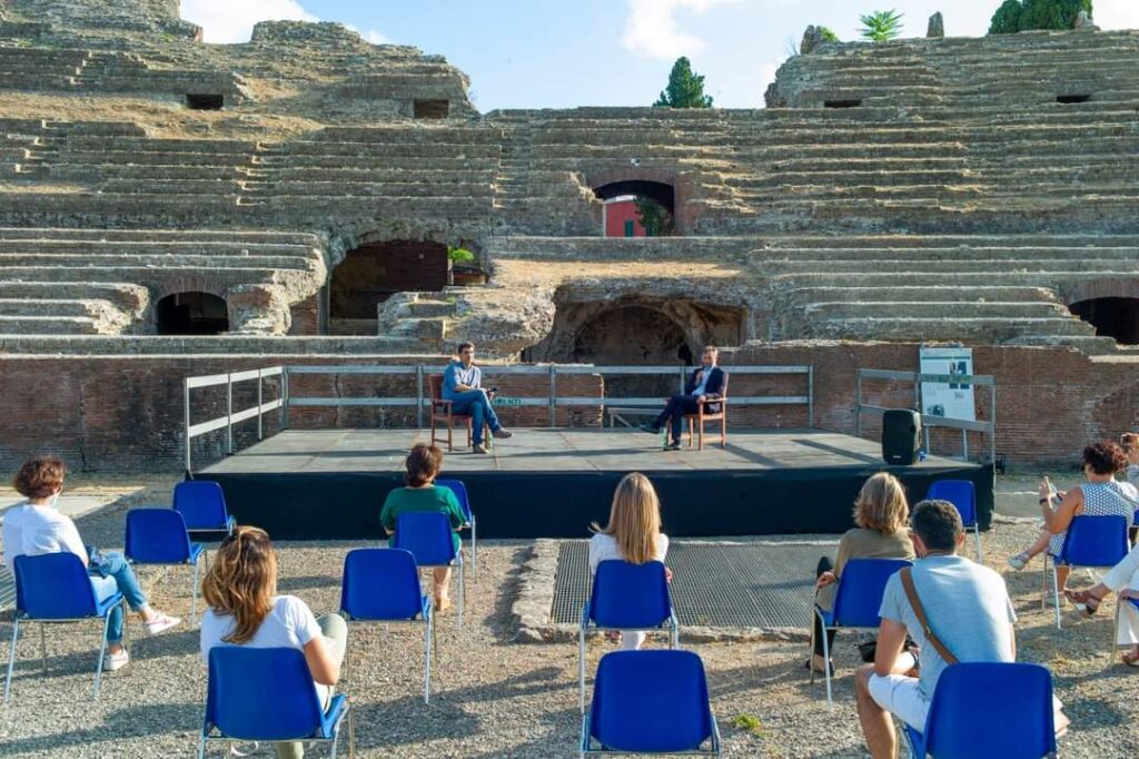 L’anfiteatro utilizzato per convegni, concerti, spettacoli e incontri culturali, è nel programma di riqualificazione in opera nella regione. L’ultima conferenza prima dell’incidente è avvenuta nel tardo pomeriggio di giovedì: si è avuto un incontro tra il direttore del Parco Archeologico dei Campi Flegrei, Fabio Pagano, e Gabriel Zuchtriegel, direttore generale del Parco Archeologico di Pompei, a margine della rassegna “Anfiteatri Contemporanei. Dialoghi dentro e intorno al monumento”.