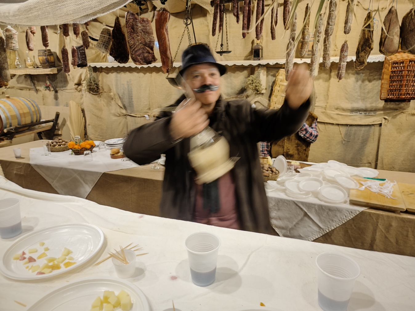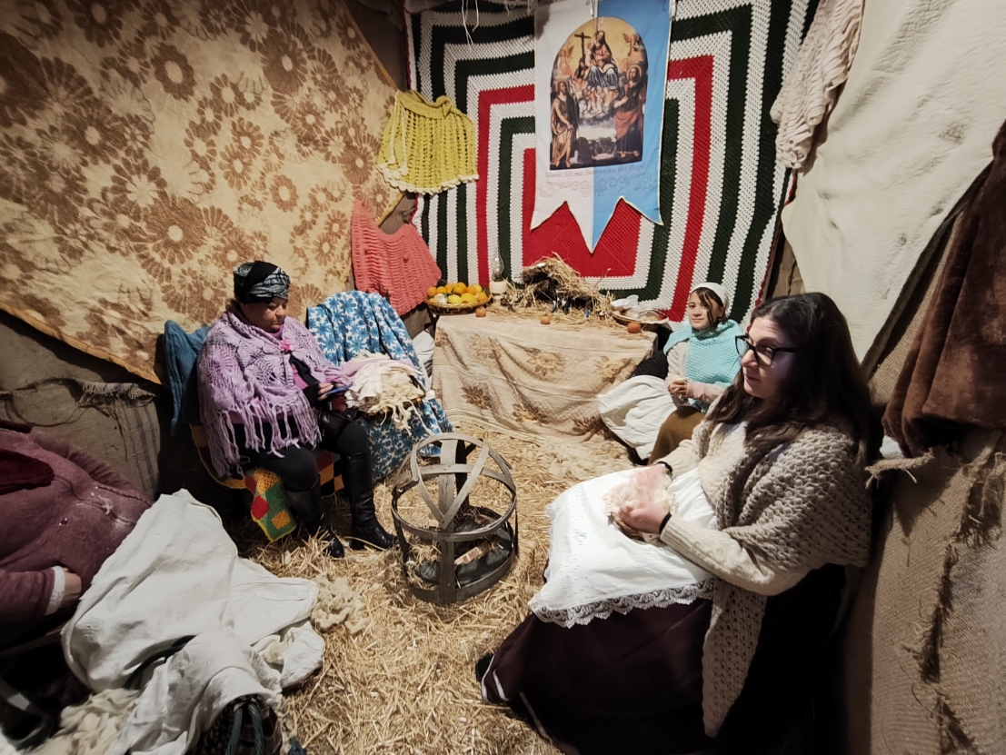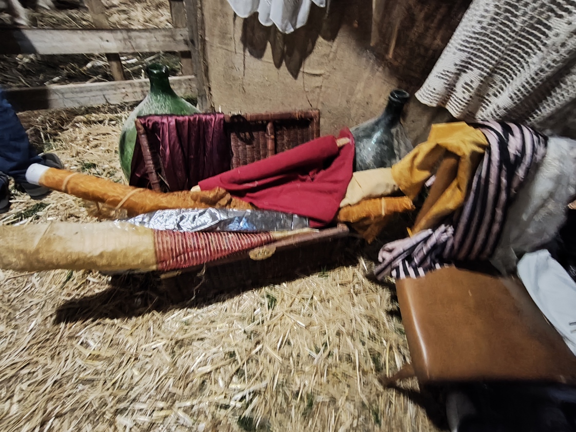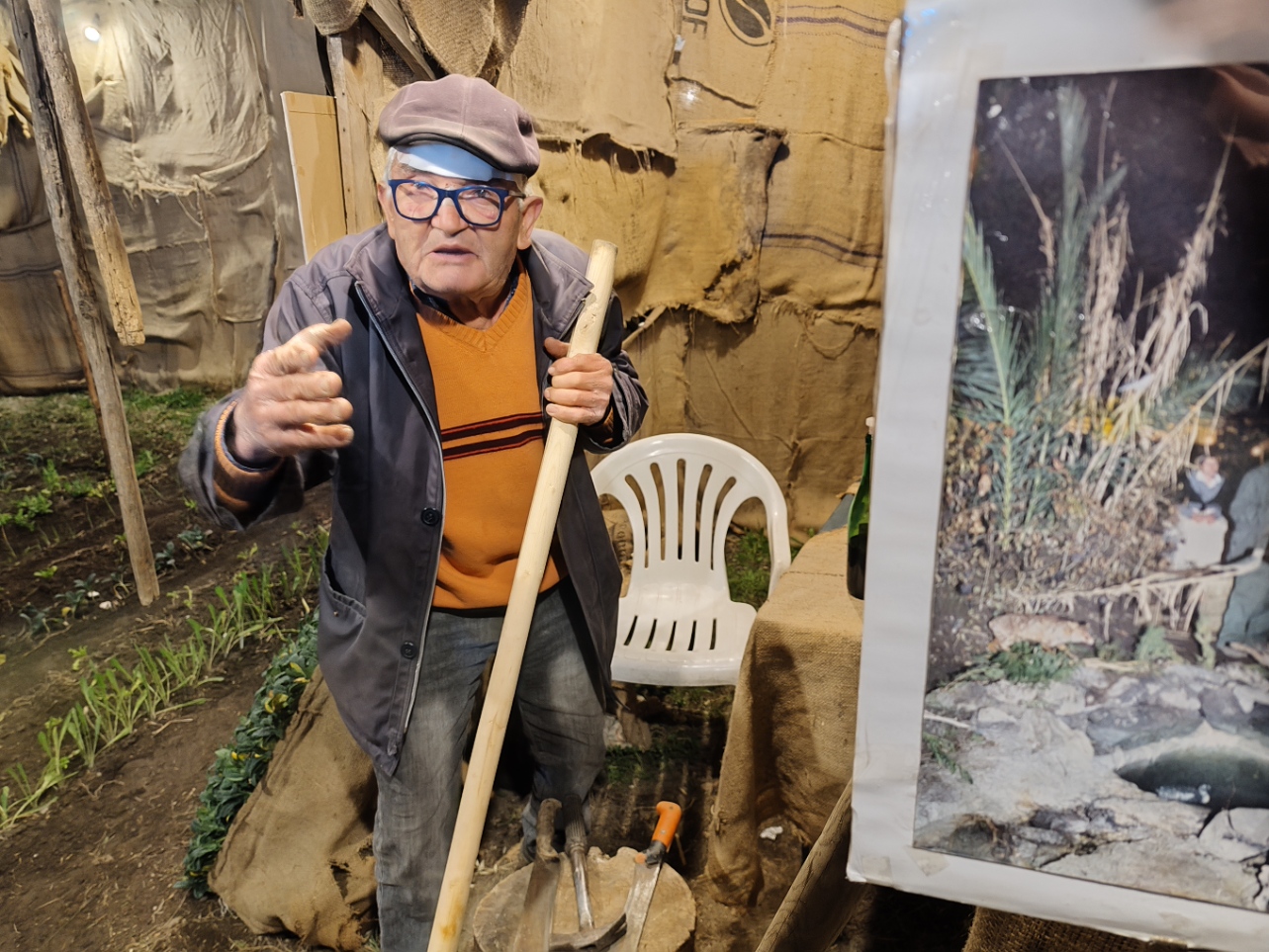 Il momento più emozionante del percorso è senza dubbio l’arrivo alla grotta della Natività. Qui, accanto a un vero bue e un asinello, la scena si completa con la presenza di bambini vestiti da angioletti, un dettaglio che commuove e rende la rappresentazione ancora più intensa e partecipata. L’unica cosa non rappresentata da persone viventi è il bambinello, mentre San Giuseppe e la Madonna sono dei veri personaggi, con Maria che resta inginocchiata e Giuseppe appoggiato al suo bastone. Non mancano i re magi, che almeno nella serata del 26 dicembre, alla quale si riferiscono le nostre foto, sono ben lontani dalla grotta. Sarà possibile vederli ai piedi di Gesù nella rappresentazione del 6 gennaio.