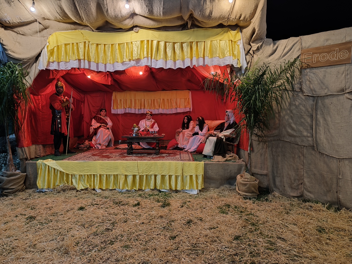 Il cuore del Presepe Vivente di Contrada Bagni è la rappresentazione degli antichi mestieri: artigiani, contadini e figuranti in costume animano le scene quotidiane di un tempo, restituendo realismo e profondità all’esperienza. Dal fabbro all’oste, passando per la fioraia, il “chianchiere” – macellaio napoletano – e le venditrici di stoffa. Ogni piccolo luogo è fedelmente riprodotto nella rappresentazione del presepe vivente di Bagni a Scafati. All’accoglienza c’è il palazzo di Erode.