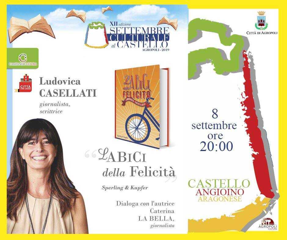 Proseguono gli appuntamenti del Settembre Culturale, presso il Castello Angioino Aragonese di Agropoli. Da domenica 8 settembre, gli incontri con la cultura saranno quotidiani, in un crescendo di emozioni e di sensazioni nuove ogni giorno. Fino a sabato 14 settembre si avvicenderanno nel salotto letterario: Ludovica Casellati (8 settembre), giornalista e scrittrice, figlia della presidente del Senato. Conosciuta anche come “lady bici”, presenterà il suo ultimo libro “La bici della felicità”; Chiara Francini, attrice conduttrice tv e scrittrice, il suo “Un anno felice”; l’attore e regista Kim Rossi Stuart, al suo esordio nel mondo della scrittura, illustrerà “Le guarigioni”. Si proseguirà mercoledì 11 settembre con “Le parole che mancano al cuore” di Fabio Canino, volto noto della tv, specie per la sua partecipazione quale giurato del programma di Rai 1, “Ballando con le stelle”. Anticipato a giovedì 12 settembre (e non più il 22) l’incontro con il prof Stefano Zecchi e il suo libro “L’amore nel fuoco della guerra”. Il già Ministro dell’Interno, Marco Minniti sarà ospite del salotto letterario venerdì 13 settembre per presentare “Sicurezza è libertà”. Chiude la settimana, Luca di Bartolomei, figlio di Agostino, con “Dritto al cuore” (sabato 14 settembre). Dal 9 settembre, gli appuntamenti si svolgeranno alle ore 19 e non più alle 20. Notevole l’entusiasmo finora mostrato dai tanti che hanno assistito alle prime presentazioni di questa XII edizione del Settembre Culturale, che promette di essere ancora più avvincente nel prosieguo.