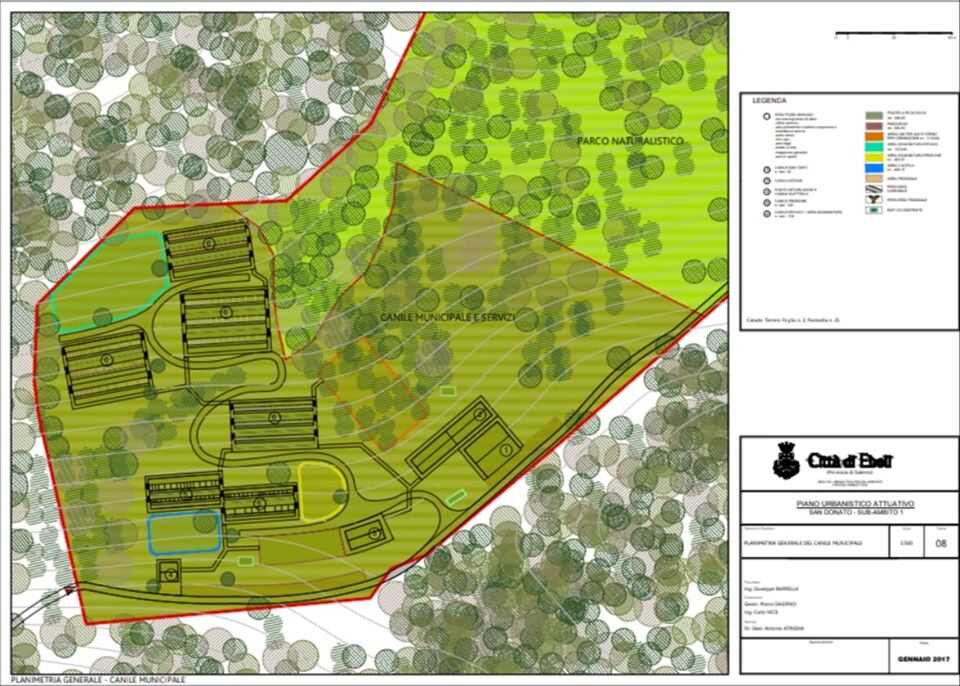 Il progetto prevede la realizzazione di un canile municipale con relativi servizi e di un parco naturalistico, su un’area complessiva di oltre 7 ettari, comprendente un parco faunistico, un parco avventura, un bosco naturale, un itinerario botanico con area picnic e parco giochi. Il piano è stato redatto dalla struttura tecnica comunale che si occupa della pianificazione territoriale.