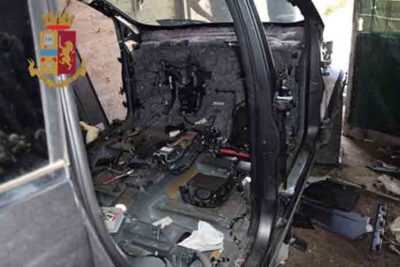 sotterranea dell’edificio dove hanno rinvenuto la carcassa del veicolo segnalato dalla ditta e altre 12 auto smontate, risultate rubate, con le corrispondenti targhe sparse nel garage; il locale utilizzato per lo smontaggio e i veicoli sono stati sottoposti a sequestro.
