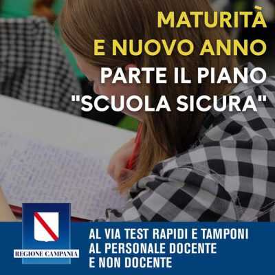 A partire dai prossimi esami di maturità e successivamente in vista dell’apertura del prossimo anno scolastico, saranno effettuati test rapidi e tamponi al personale docente e non docente. Per i soli esami di maturità lo “screening” per la sicurezza sanitaria riguarderà circa diecimila soggetti in Campania.