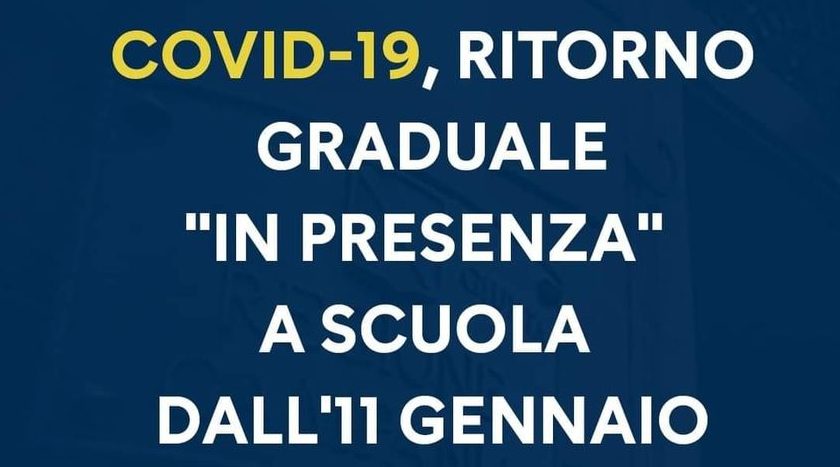 A partire dal 18 gennaio sarà valutata dal punto di vista epidemiologico generale, la possibilità del ritorno in presenza per l’intera scuola primaria, e successivamente, dal 25 gennaio, per la secondaria di primo e secondo grado.