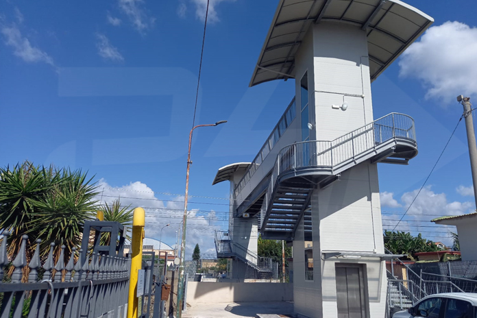 L’intera struttura del sovrappasso pedonale è in acciaio e gli ascensori presentano delle ampie vetrate, un’opera che, integrandosi con il cavalcavia già aperto al pubblico lo scorso 10 aprile 2019, migliorerà progressivamente la viabilità dell’intera zona grazie anche all’eliminazione del passaggio a livello di via Palmentelle, per un investimento complessivo di circa 15 milioni di euro.