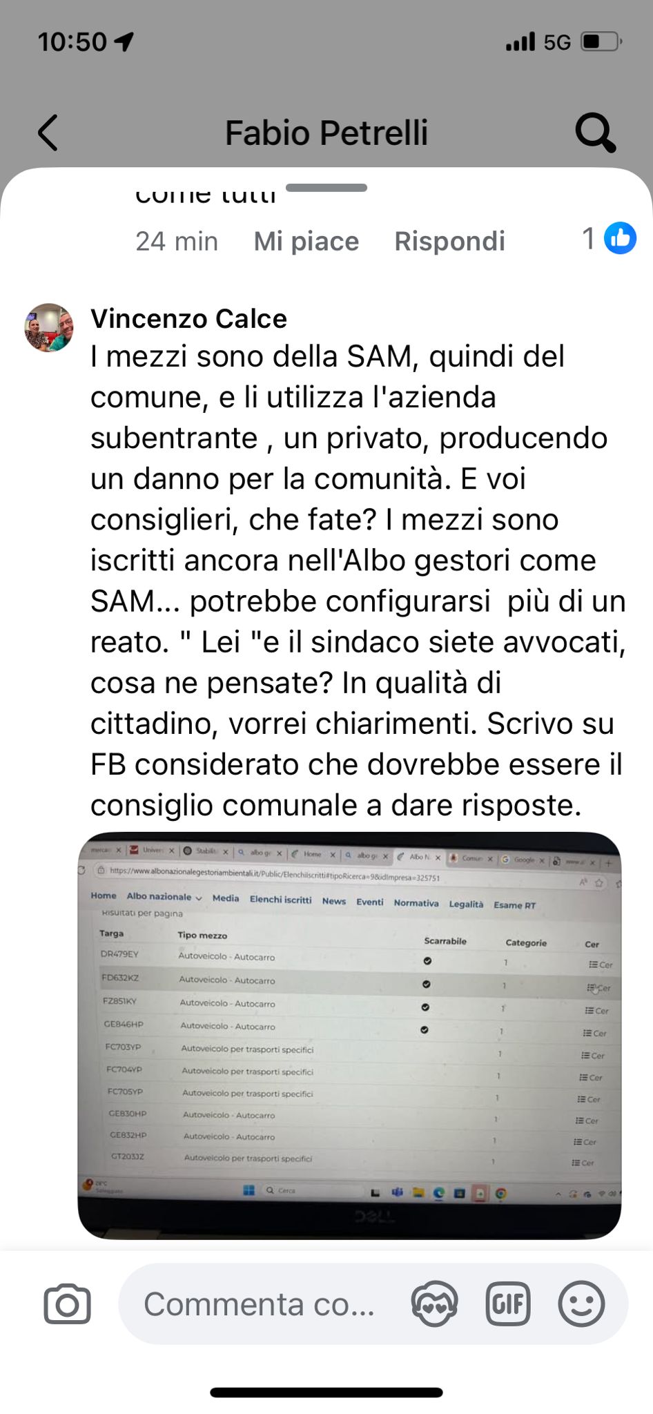 La foto, presente in copertina, è stata realizzata in questi ultimi giorni dopo il subentro di Econova. L’ex consigliere comunale segnala all’avvocato Petrelli, attuale consigliere in opposizione, di intervenire sulla vicenda. Calce dimostra come ci siano ancora i mezzi iscritti con la denominazione “Sam”.