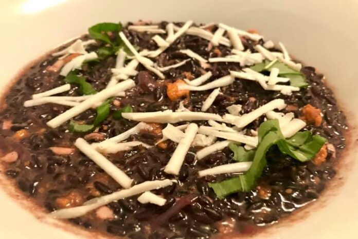 Riso Venere con ricci di mare al profumo di limone, zenzero e cacioricotta di pecora