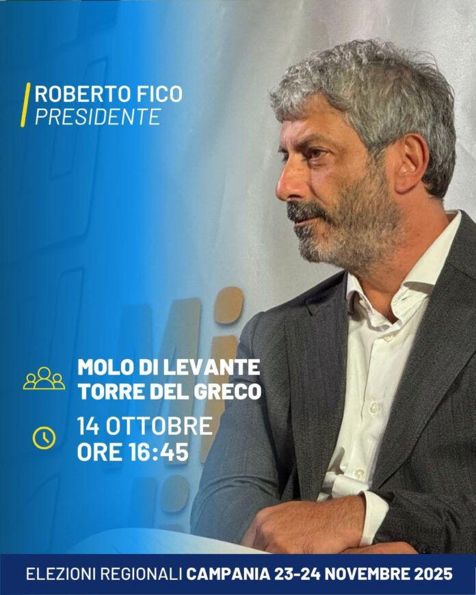 Martedì 14 ottobre, alle 16.45, il candidato del centrosinistra alla presidenza della Regione Campania, Roberto Fico, sarà al Molo di Levante del porto di Torre del Greco per un incontro con il sindaco Luigi Mennella e numerosi rappresentanti del tessuto associativo locale.
