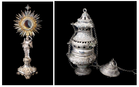 Si svolegerà domani, a Contursi Terme (SA), presso la Chiesa “Santa Maria degli Angeli”, alla presenza dell’Assessore ai Beni Culturali del Comune di Contursi Terme Gerarda Forlenza, del Parroco Salvatore Spingi e del Comandante del Nucleo Carabinieri Tutela Patrimonio Culturale (TPC) di Napoli, Capitano Giampaolo Brasili, la cerimonia di riconsegna di un ostensorio del XIX secolo, sottratto il 20 gennaio 2016 da quel luogo di culto e di un turibolo in argento, asportato il 7 maggio 1997 dalla chiesa “San Nicola di Bari” di Ceraso (SA).