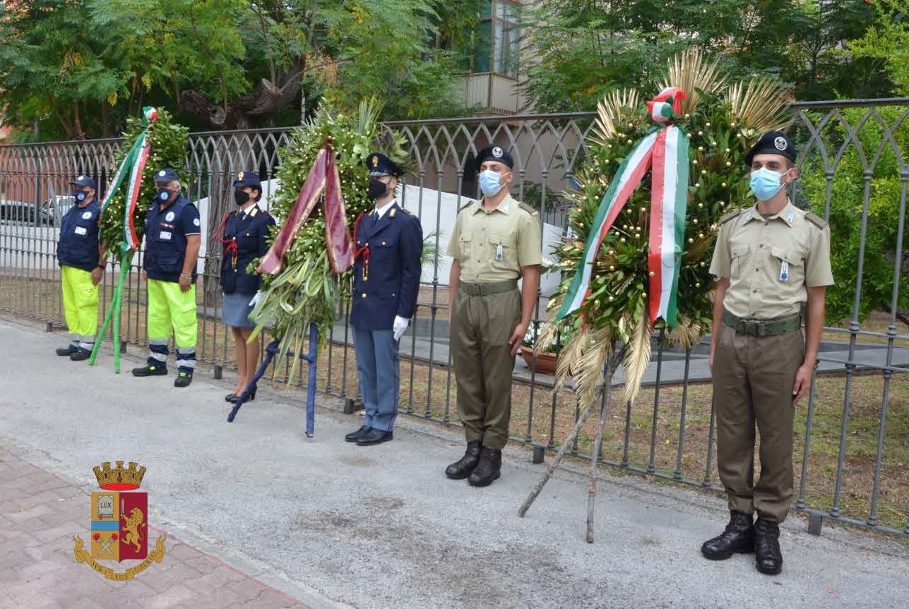 Questa mattina, a Salerno, con inizio alle ore 10.00, in Via Parisi (ora Piazza Vittime del terrorismo) nel quartiere Torrione di Salerno, nel rispetto delle misure di contenimento previste dalla normativa COVID – 19, alla presenza del Prefetto della provincia di Salerno dr. Francesco Russo e del Questore della provincia di Salerno dr. Maurizio Ficarra, con la sola deposizione di tre corone di alloro al monumento eretto, offerte dalla Polizia di Stato, dall’Esercito Italiano e dal Comune di Salerno, si è tenuta una breve cerimonia per ricordare il barbaro attentato terroristico che provocò, in data 26 agosto 1982, la morte dell’Agente della Polizia di Stato Antonio Bandiera, dell’Agente Scelto della Polizia di Stato Mario De Marco e del Caporale dell’Esercito Italiano Antonio Palumbo