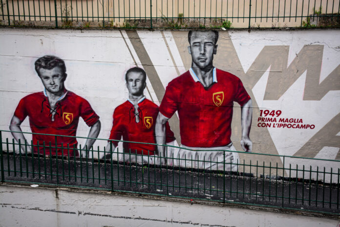 “L’Associazione Culturale 19 Giugno 1919 è lieta di annunciare che è stato recentemente terminato il murales al sottopasso che collega Via Santi Martiri Salernitani a Via Dalmazia, nei pressi dello Stadio Donato Vestuti.Un segno indelebile sul muro, come è indelebile l’amore dei salernitani per la U.S. Salernitana 1919.