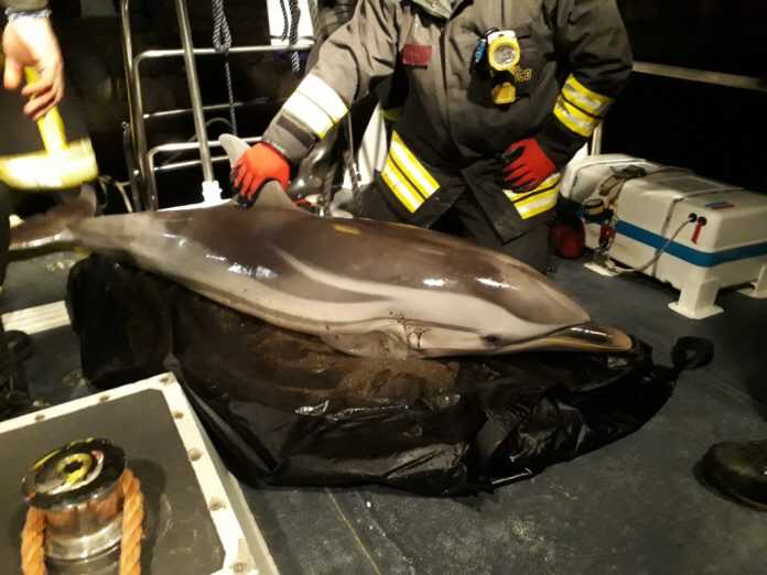 La Guardia Costiera di Salerno ha appena concluso un’operazione di salvataggio a favore di un delfino spiaggiato vivo sul Lungomare Colombo di Salerno.Le operazioni di soccorso sono state avviate dalla Sala Operativa della Capitaneria di porto di Salerno, al comando del Capitano di Vascello Giuseppe Menna, a seguito di una segnalazione ricevuta sul numero blu 1530 da parte di un cittadino che segnalava la presenza di un delfino vivo spiaggiato di circa 200 cm di lunghezza e 50 cm di larghezza. Immediatamente è stato disposto l’invio di personale militare dipendente sul luogo oggetto della segnalazione ed è stato allertato il servizio veterinario della ASL di Salerno. Tempestivo è stato altresì l’intervento di una squadra dei Vigili del Fuoco di Salerno che ha contribuito efficacemente al salvataggio del delfino. Erano inoltre presenti due pattuglie delle Forze di Polizia per evitare problemi alla viabilità a causa della folla di curiosi accorsa per assistere alle operazioni di recupero del mammifero.Il personale intervenuto si è inizialmente adoperato per aiutare l’animale a riprendere il largo ma a seguito di numerosi tentativi non andati a buon fine a causa della risacca, si decideva di imbragare il delfino e trasportarlo con un automezzo dei Vigili del Fuoco presso il Molo Manfredi del porto di Salerno dove la motovedetta della Guardia Costiera era pronta a condurre il mammifero nuovamente verso la libertà. Le operazioni di salvataggio sono state condotte sotto la supervisione medica del veterinario e non appena raggiunta una zona sicura, nelle acque al largo del porto di Salerno, l’animale è stato liberato.Un’operazione a lieto fine quella condotta in serata dai militari della Guardia Costiera, conclusasi con la liberazione del delfino che in segno di ringraziamento ha preso il largo saltando per la libertà riconquistata.