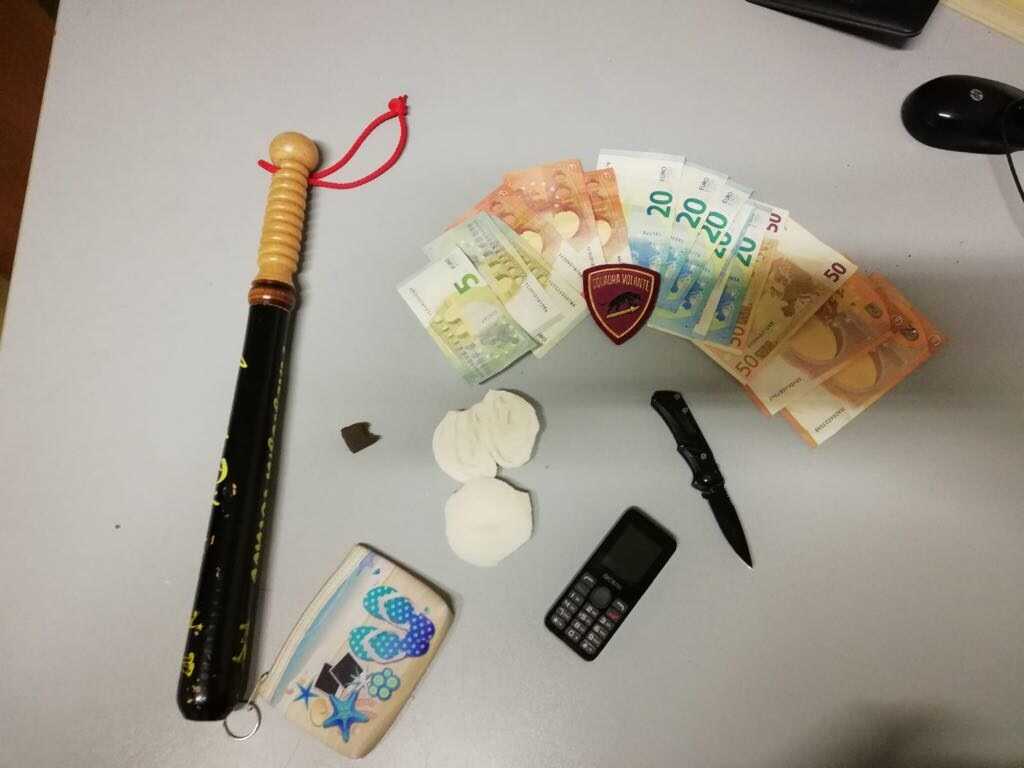Salerno: trovati in possesso di hashish in zona Parco del Mercatello, scattano le denunce per due giovani incensurati del posto.Nella serata di ieri, gli agenti della Sezione Volanti hanno sottoposto a controllo due giovani salernitani, V.V. di anni 19 e D.M.G. di anni 19, entrambi incensurati, che si aggiravano con fare sospetto nei pressi del Parco del Mercatello. Alla vista della volante i due hanno cercato, invano, di dileguarsi all’interno dei giardini; bloccati, per loro è scattata la perquisizione personale e veicolare. L’attivita’ di controllo ha consentito di rinvenire un borsello con sostanza stupefacente, rivelatasi poi di tipo hashish ( gr. 4,28), la somma di 365 euro in banconote di vario taglio ed un coltello a scatto; all’interno dell’autovettura veniva rinvenuto un manganello di legno lungo 43cm. Poco lontano dal luogo del controllo veniva rinvenuto un altro borsellino, occultato dietro un cestino per i rifiuti, con all’interno due pezzi di sostanza avvolta in cellophane, rivelatasi alle analisi di tipo cocaina, per un peso di 80 grammi.