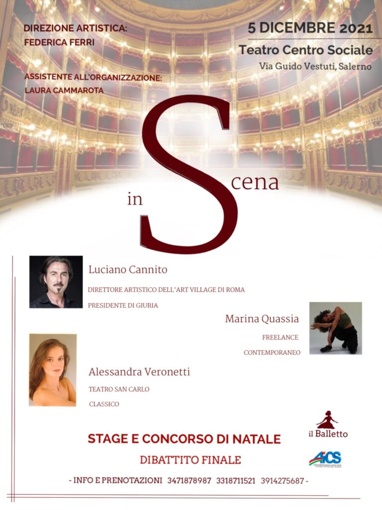 Una full immersion nel mondo della danza, con un’intera giornata dedicata a lezioni, stage ed al concorso creato per l’occasione, con la presenza di noti artisti del settore: domenica 5 dicembre, al Centro Sociale di Salerno, si svolgerà “In Scena”.