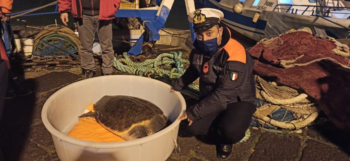 Salerno – La capitaneria di porto salva una tartaruga marina intrappolata nelle reti dei pescatori