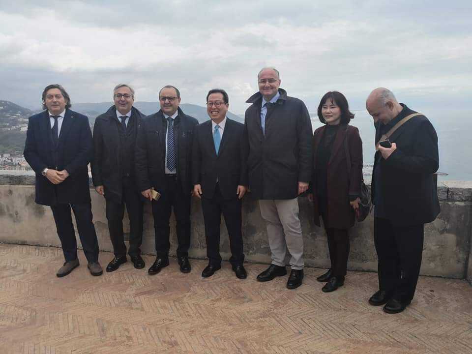 Stamattina presso il Salone Bottiglieri di Palazzo Sant’Agostino, è stata presente una delegazione coreana guidata dall’On. Cho Kwang-han, Sindaco della Città di Namyangju, Corea del Sud, accompagnato da un gruppo di consiglieri della municipalità coreana. Ad accoglierli sono stati il Vicepresidente della Provincia, Carmelo Stanziola, il Consigliere provinciale Antonio Rescigno e il Dirigente Ciro Castaldo, che hanno curato i rapporti fra gli Enti. La visita è stata programmata a seguito delle relazioni fra i due Enti conseguenti al gemellaggio iniziato nel 2016, e poi rinnovato, fra la Provincia di Salerno e la Città di Namyangju, allo scopo di rafforzare strategie comuni di cooperazione, nel rispetto e omprensione della reciproca cultura e tradizione. Nel primo pomeriggio la delegazione ha visitato lo splendido CASTELLO DI ARECHI, proprieta’ della Provincia, dove sono stati raggiunti anche dal Presidente della Provincia Michele Strianese. “Ringrazio l’On. Cho Kwang-han, Sindaco della Città di Namyangju, Corea del Sud – dichiara il Presidente della Provincia, Michele Strianese – per la gradita visita. Dopo l’incontro a Palazzo Sant’Agostino hanno visitato la Pinacoteca Provinciale e il Castello d’Arechi. Abbiamo concordato di consolidare le relazioni di amicizia, che già esistono fra la Provincia di Salerno e la Città di Namyangju, sulla base del reciproco rispetto per promuovere cooperazione fra i nostri Enti e la conoscenza di entrambi i territori. Abbiamo rinnovato il gemellaggio, quindi lavoreremo insieme per attivare scambi e collaborazioni su interessi comuni come la cultura, l’arte, l’economia, le amministrazioni pubbliche, l’agricoltura biologica, la cultura alimentare, il patrimonio storico e culturale, lo slow life e le istituzioni scolastiche.”