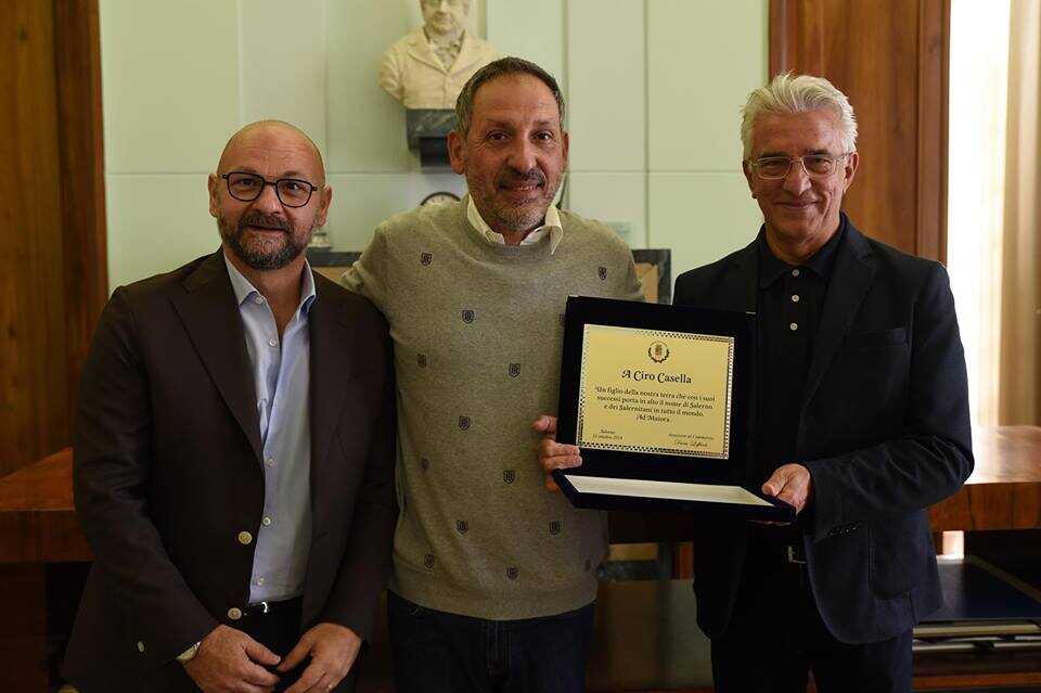 Un piccolo ma sentito riconoscimento a Ciro Casella, pizzaiolo salernitano che ha portato in alto il nome di Salerno a New York. In America da otto anni, ha voluto conservare ben salde le radici chiamando i suoi ristoranti “San Matteo” e dando alle pizze e panuozzi nomi come Vestuti, Di Bartolomei o De Luca. Ciro Casella è stato ricevuto al Comune di Salerno dal sindaco Napoli al quale dedicherà una pizza. “Ciro è un ragazzo che si è fatto da sé con grande spirito di sacrificio, forza d’animo e intelligenza imprenditoriale: salernitano orgoglioso delle sue origini, che ai suoi clienti, tra cui anche il Sindaco De Blasio, racconta le bellezze di Salerno, è divenuto ambasciatore della città e delle sue eccellenze” il commento del sindaco di Salerno.