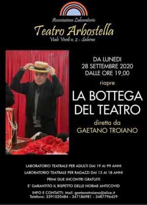 Dopo il recupero del cartellone 2019/20 dei tre spettacoli sospesi a marzo e messi in scena in estate nella location dell’Arena del Mare, il Teatro Arbostella riparte con la sua programmazione invernale. Da oggi 28 settembre infatti riparte il laboratorio teatrale curato dal maestro Gaetano Troiano. Dalle ore 19 riecco la Bottega del Teatro, voluta fortemente una decina di anni fa dal compianto Gino Esposito, direttore artistico dell’Arbostella scomparso lo scorso aprile e curato con abilità dallo stesso Troiano.