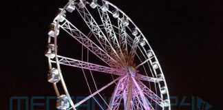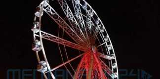 E parlando di numeri, la ruota è alta ben 55 metri, presenta 28 cabine da 6 posti ciascuna (quindi per un totale di 168 posti totali), pesa 300 tonnellate e giunge dalla Germania.