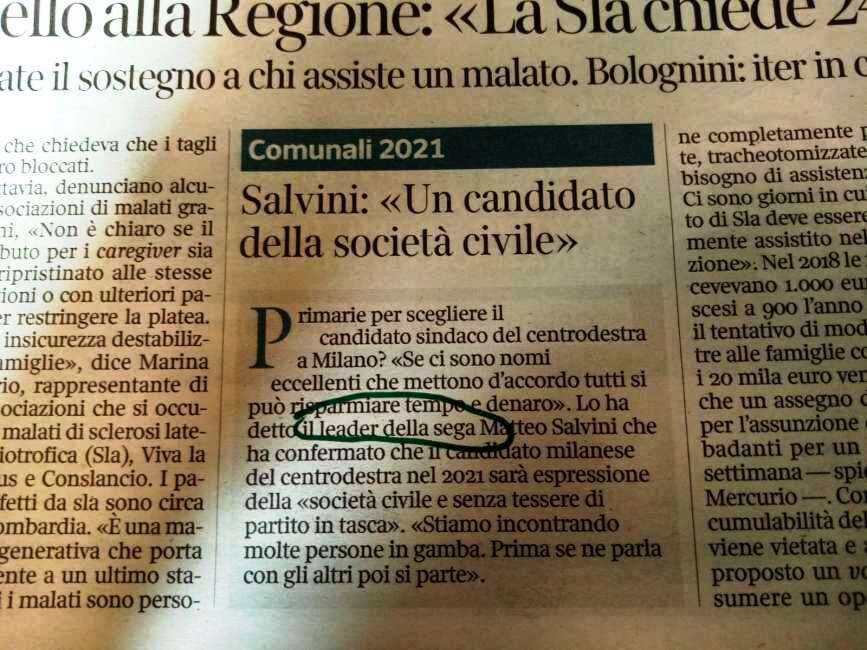 Sta facendo il giro del web la pagina del Corriere della Sera che contiene il refuso del secolo: Matteo Salvini viene infatti definito “il leader della sega”, anziché della Lega. La curiosità è stata scoperta dal sito Dagospia.com.