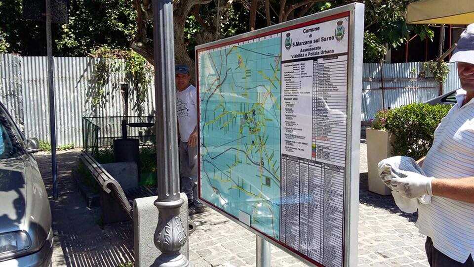 Sono stati installati a San Marzano sul Sarno i nuovi tabelloni informativi con mappe ed elenco strade cittadine in Piazza Umberto I, Piazza Amendola, Piazza Mazzini e nei pressi dell’Istituto comprensivo. Prevista un’altra installazione anche in Largo De Gasperi non appena saranno collocate le pensiline per l’attesa dei bus. A comunicarlo é l’Assessore alla Viabilità e alla Polizia Locale Raffaele Belvedere.