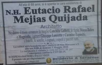 Grande architetto, di spirito libero e di idee liberissime. Domani ultimo saluto per Eutacio Rafael Mejias Quijada, anni 69. Lascia la moglie e due figlie, lascia tanti altri affetti e tante altre amicizie, rapporti professionali e umani consolidati da tempo.