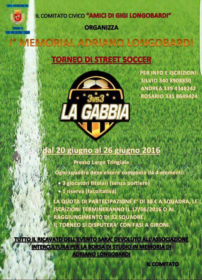 Sono aperte, a San Valentino Torio, le iscrizioni al torneo di Street Soccer “La Gabbia”. “Sarà il primo memorial per ricordare il nostro caro amico Adriano Longobardi – ha dichiarato il sindaco Strianese – L’evento di sport e spettacolo, patrocinato dal comune ed organizzato dal comitato civico “Amici di Gigi Longobardi”, si terrà dal 20 al 26 giugno nella frazione Casatori. Stiamo lavorando al cartellone dell’Estate San Valentinese che sarà ricco di serate di musica, sport, cultura ed intrattenimento per tutte le età”.