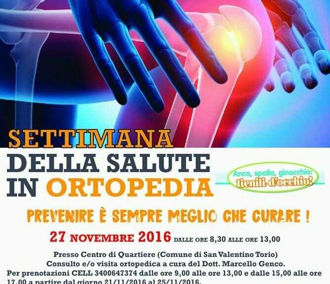 Si terrà il 27 novembre a San Valentino Torio, dalle ore 8:30 alle ore 13:00, la “Giornata della salute in ortopedia”. Durante l’iniziativa, promossa dall’assessorato alle politiche sanitarie, i cittadini potranno chiedere (previa prenotazione) consulti o essere sottoposti a visite ortopediche totalmente gratuite presso il Centro di Quartiere di via Don Tonino Bello. “Un’opportunità – secondo il sindaco Strianese – che mette ancora a disposizione la nostra Amministrazione Comunale. Siamo più che mai vicino ai nostri concittadini con l’offerta di servizi anche gratuiti”. Prevenire è sempre meglio che curare.