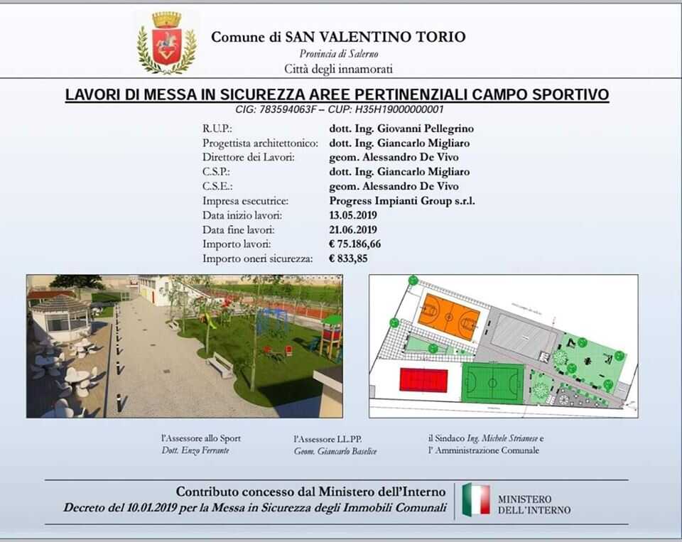 Inizio dei lavori di Messa in Sicurezza delle Aree Pertinenziali del Campo Sportivo. Si parte domani per realizzare un’ altra area ludico/sportiva attrezzata per bambini, giovani e famiglie che sara’ a disposizione della Citta’ gia’ dall’ estate. Quattro anni fa il Campo Sportivo era distrutto, abbandonato e sequestrato dall’ Autorita’ Giudiziaria gia’ da 5 anni. Tutto bloccato e vandalizzato. Non esistevano piu’ nemmeno le porte e le panchine. Nel campo da gioco era cresciuta erba alta due metri. L’amministrazione Strianese l’ha riaperto e sistemato ed ora lo riqualifica.