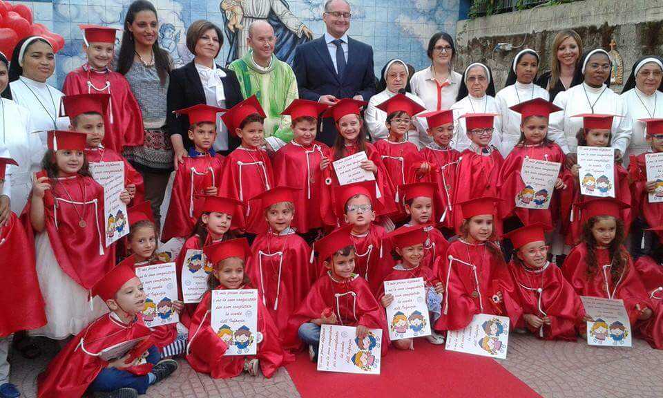Si è svolta ieri sera la cerimonia di fine anno per la consegna di simbolici attestati a tutti i bambini che hanno frequentato la scuola dell’infanzia dalle Suore Vocazioniste presso l’Istituto Principe di Piemonte. “Si apprestano ora a fare un passo importante verso la scuola primaria – ha dichiarato Strianese – Auguri e complimenti, dunque, a tutti i bambini, le loro famiglie, le insegnanti e le suore guidate da Suor Rosetta che hanno creato, già da anni, una bellissima realtà educativa e sociale nel nostro paese che sarà sempre supportata dall’Amministrazione Comunale”.