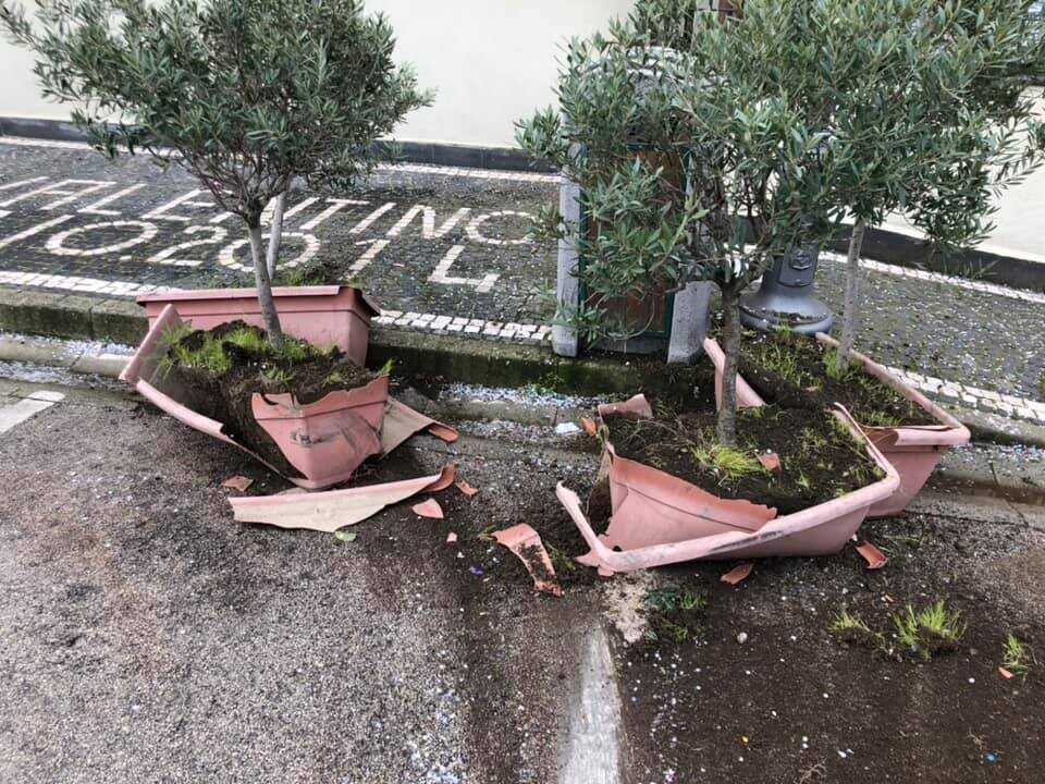 Ieri sabato mattina alle ore 5.36 questa panda bianca, già identificata con la targa, ha completamente distrutto gli ulivi che delimitano il passaggio pedonale laterale della chiesa parrocchiale.Deplorevole il fatto che si continui tutte le sere a sgommare dietro la villa, ma ancor più deplorevole che non ci si assumi la responsabilità delle proprie azioni.