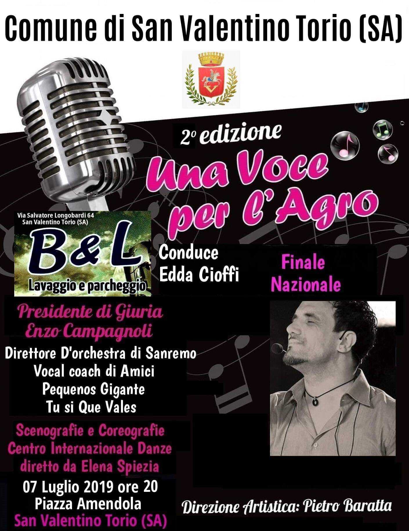 Domenica 7 Luglio in Piazza Amendola a San Valentino Torio (Sa) ci sara’ la fInale del concorso canoro “UNA VOCE PER L’ AGRO”, si esibiranno 28 straordinari artisti del territorio dell’agro nocerino sarnese. L’evento e’ presente nel cartellone dell’ estate San Valentinese, organizzato e supportato dall’ amministrazione comunale.
