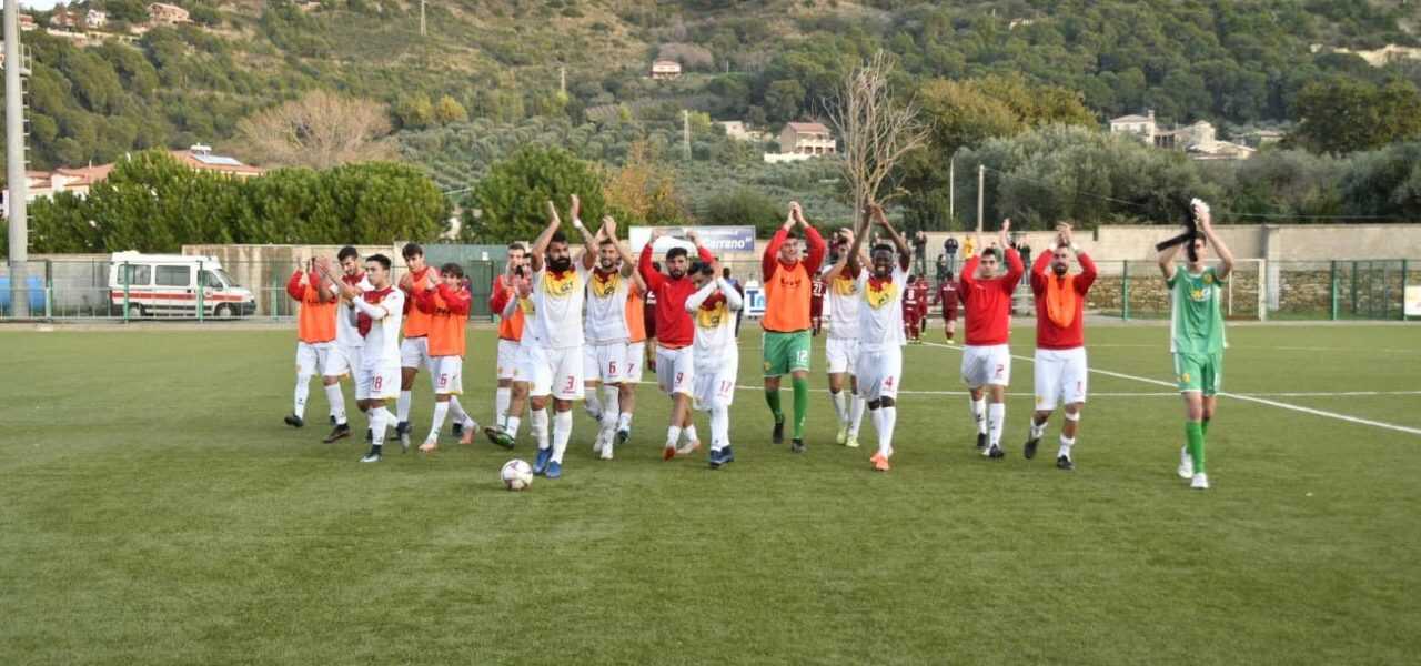 I giallorossi vincono per 2-1 grazie ai sigilli di Capozzoli e Pellegrino che regalano tre punti importanti alla società cilentana.  I padroni di casa partono meglio e cercano di imporre, sin da subito, il loro gioco, presidiando la metà campo avversaria. Al 5′, sugli sviluppi di un corner, è Chiariello di testa a schiacciare verso la porta di Bruno, che blocca senza patemi. Al primo vero affondo la Polisportiva passa: al 10′ Capozzoli riceve un traversone di testa, non proprio la sua specialità, proveniente dal settore sinistro e deposita oltre la linea bianca per il vantaggio cilentano.  Il Lioni perviene al pari al 24′: la palla giunge a D’Acierno, su una punizione battuta velocemente a centrocampo, la punta gira in bello stile superando Grieco, portando il parziale sul punteggio di 1-1. La risposta della Polisportiva arriva con Margiotta al 26′: il centravanti, dal limite dell’area, calcia in maniera potente spedendo la sfera mezzo metro sopra la trasversale. Sul lato opposto,  dopo un minuto, è Castellano a cercare gloria, senza riuscire a dare precisione al suo tiro. Pellegrino, al 29′,  vede strozzato in gola l’urlo del gol:  l’ex Faiano vede infatti annullata la sua rete dopo la segnalazione del guardalinee, che vanifica la marcatura locale. Al 31′ D’Acierno sfiora la doppietta, pennellando, di destro, la palla sul palo sul lontano, Grieco può solo guadare il pallone che fa la barba al legno. Polisportiva ancora vicina al raddoppio al 36′: Margiotta, stoppa di petto al limite, servendo nel corridoio Della Torre che vede battere sulla traversa la sua conclusione. Lo stesso centrocampista si rivede al 41′, quando Pellegrino anticipa l’uscita di Bruno servendo il numero 7 poco lucido nel suo tentativo di marcatura a rete.