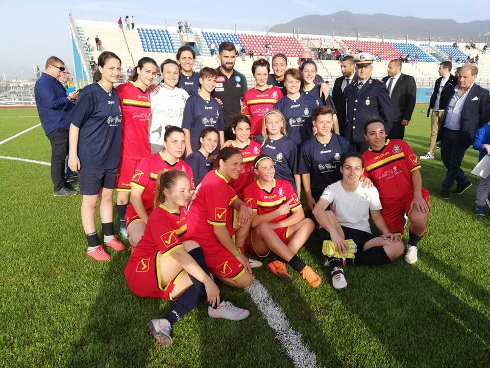Termina con la vittoria delle ‘blu’ l’amichevole in famiglia delle leonesse del Sant’Egidio di Valentina De Risi, in occasione dell’inaugurazione dello stadio comunale di Santa Maria la Carità, Campania. A termine della partita, le leonesse hanno avuto modo di fare una foto ricordo con il calciatore del Napoli Elseid Hysaj