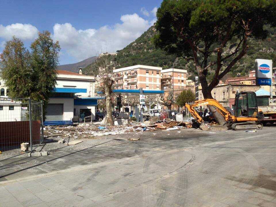 E’ stato abbattuto questa mattina il chiosco-edicola di piazza Marconi a Sarno. Grazie allo schema di transazione approvato dalla Giunta Canfora si chiude una pagina aperta da venti anni e si pongono fine a tutti i contenziosi. Nessuna spesa sarà a carico dei cittadini in quanto l’impresa sta eseguendo gratuitamente abbattimento e smaltimento della struttura. L’accordo tra le parti prevede la realizzazione di una nuova edicola a spese della proprietaria in prossimità dei bagni pubblici, in un punto diverso rispetto a quello in cui era posizionato il vecchio manufatto.