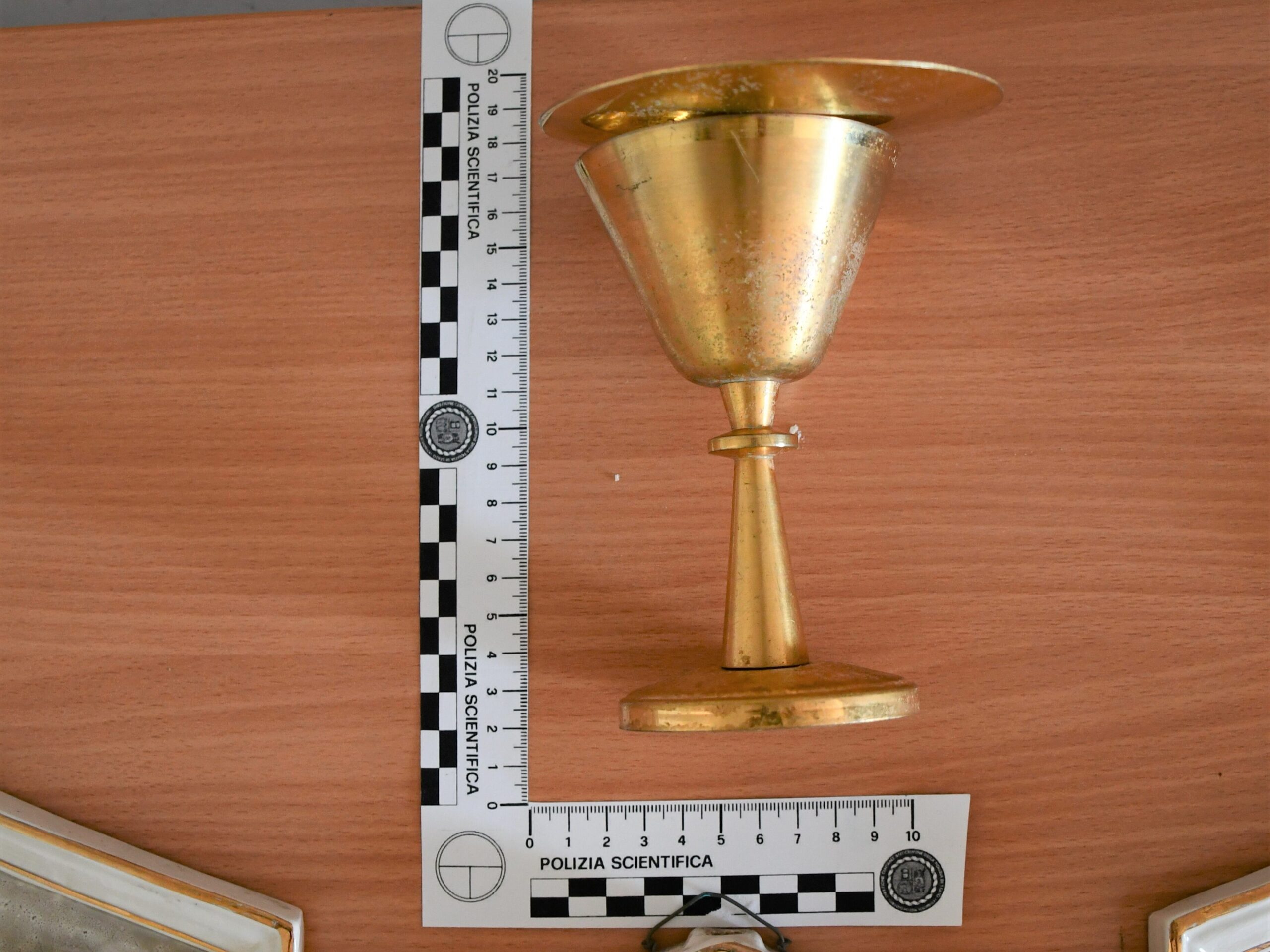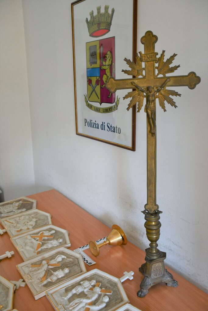 In particolare, grazie al sequestro operato dagli agenti nei confronti dei malfattori, sono stati immediatamente restituiti e sono di nuovo al loro posto ben 14 quadretti di pregio, frutto dell’artigianato in ceramica, raffiguranti le varie stazioni della via Crucis, un calice in ottone con relativo vassoio porta ostie ed un crocefisso da altare.