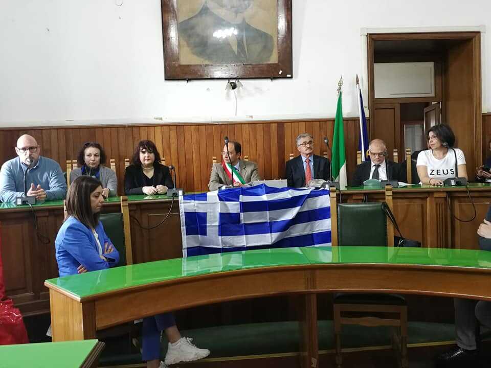 Questa mattina, presso l’Aula Consiliare del Comune di Sarno, il Preside, i docenti e gli studenti del Liceo Classico “T. L. Caro” (classi 3^ A-B-C), alla presenza del Vice Sindaco Gaetano Ferrentino e degli Assessori Eutilia Viscardi e #Vincenzo Salerno, hanno accolto la delegazione del Ginnasio di Nea Makri (Maratona, Grecia), per completare il percorso progettuale di scambio culturale tra le due scuole, iniziato nel novembre scorso, che si concluderà con la visita degli alunni del “Caro” in Grecia il prossimo anno scolastico. Docenti referenti del progetto, le professoresse Teresa Donnarumma e Rosa Viscardi.