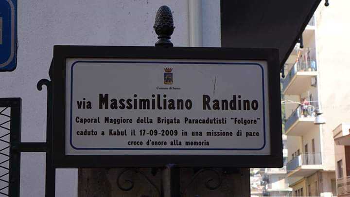 Un lungo applauso ieri ha seguito lo scoprimento della nuova insegna che titola, in misura definitiva, la seconda traversa di via Piave alla memoria di Massimiliano Randino. Il caporale maggiore della Folgore morto a Kabul diversi anni fa da ieri mattina sarà ricordato per sempre nella città di Sarno. Il sindaco Giuseppe Canfora e l’amministrazione da lui guidata ha intitolato la strada cittadina all’eroe del territorio, deceduto nel corso di una missione di pace. L’intitolazione, già prevista per l’inizio dell’anno 2018, si è tenuta solo ieri ed è stata officiata dal parroco della chiesa di San Teodoro di Sarno don Antonio Agovino. Al rito hanno partecipato i genitori di Massimiliano, Mario e Anna Randino, nonché il fratello Roberto.