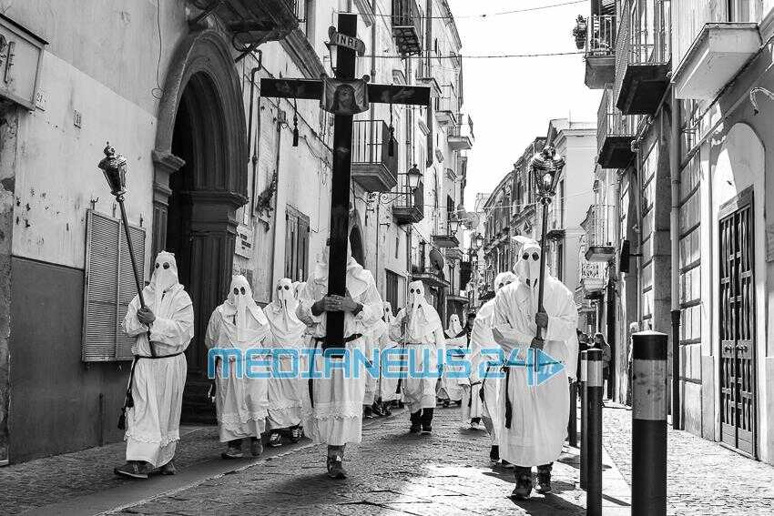 Alle prime luci dell’alba il rito si ripete. Dal 1200 circa, nella città di Sarno, secondo una tradizione che si tramanda di padre in figlio e che prende vita nelle strade cittadine prima ancora che sorga il sole. Si tratta di un corteo di uomini incappucciati (per questo chiamati “Paputi”) che portano la croce del Cristo per le strade del paese, fermandosi ad ogni Altare della Reposizione, allestito non in chiesa bensì all’aperto, su palchetti vari. Lì, le donne intonano canti di dolore in memoria del Cristo defunto. Le diverse congregazioni parrocchiali indossano una tunica bianca con cappuccio alzato e, per riconoscersi tra loro, hanno un proprio cordone e una propria ornatura. Fanno eccezione la confraternita di San Matteo (che indossa una tunica rossa per simboleggiare la preminenza sulle altre chiese sarnesi) e San Francesco (che porta, invece, il saio monacale). La processione, oltre a ricordare la Via Crucis compiuta da Gesù Cristo, simboleggia il passaggio tra la vita e la morte e l’eliminazione del vecchio a favore del nuovo. Tutti di nuovo in piazza in serata, procedendo con l’adorazione della croce.