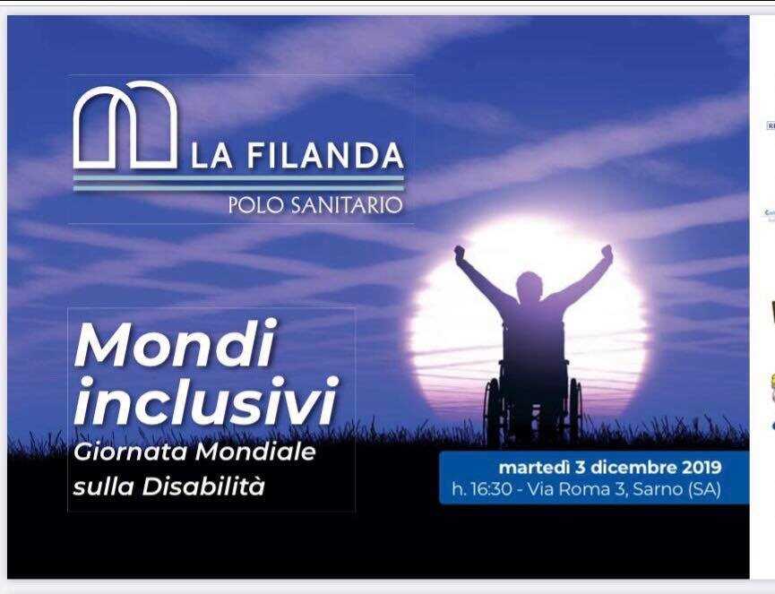 Il prossimo 3 dicembre, a Sarno diventa “Mondi Inclusivi” grazie all’evento del Polo Sanitario La Filanda di Sarno con l’amministratore unico Nilde Renzullo, il direttore generale Romeo Barbato in collaborazione con la Fondazione Saron. “Mondi Inclusivi” vuole promuovere una più diffusa e approfondita conoscenza sui temi della disabilità, sostenere la piena inclusione in ogni ambito della vita ed allontanare ogni forma di discriminazione. Un messaggio universale di abbattimento delle barriere architettoniche, dei pregiudizi e di svolta fatta di vere possibilità per tutti. Ospite speciale l’attore Gianni Parisi, che presenterà in anteprima assoluta il cortometraggio suo “Un pezzo di luna”, realizzato con e per i bambini del progetto “Insieme si può”. Alla manifestazione interverranno il presidente della Regione Campania, Vincenzo De Luca; il sindaco di Sarno, Giuseppe Canfora, il presidente della Provincia di Salerno, Michele Strianese. Sono previsti, inoltre, interventi di Gianni Sasso, campione paralimpico di Triathlon; Alessandra Vitale, capitano della nazionale femminile di Sitting Volley ed ambasciatrice del Comitato Italiano Paralimpico; Carmine Mellone, presidente del Comitato Italiano Paralimpico della Campania; Manfredo Fucile, presidnete regionale fip; Crazy Ghosts, atleti di basket in carrozzella; Porfidio Monda, direttore di Agro Solidale; Enrico Coscioni, consigliere del presidente della Regione per la sanità
