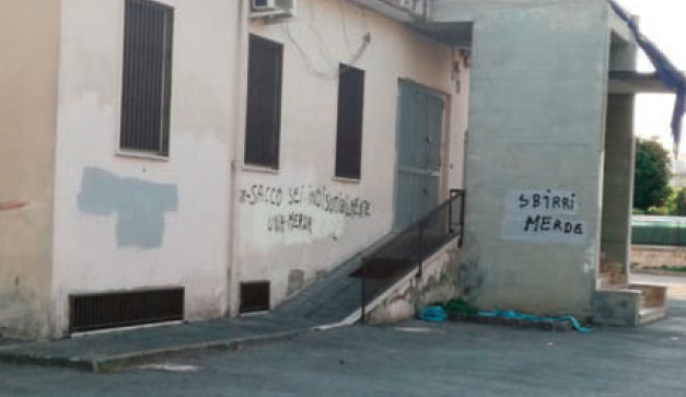 Dopo le scritte minacciose dei mesi scorsi, indirizzate a magistrati della procura di Nocera Inferiore, del Partito Democratico ed altre ancora inneggianti all’Isis, tornano le ingiurie “sui muri” questa volta contro le forze dell’ordine, vicino alla sede del Giudice di Pace di Sarno. Il “vandalo notturno” ha preso di mira il comandante della stazione dei carabinieri ed anche l’ispettore del locale commissariato di polizia. Le scritte sono comparse su via prolungamento Matteotti.