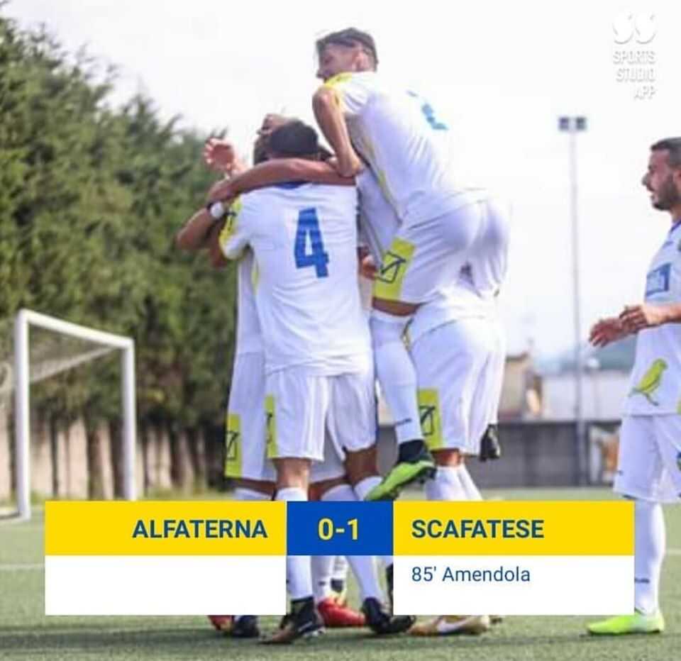 Al rientro in campo l’Alfaterna serra le file difensive e mette in difficoltà la compagine giallobleu, così Nastri decide di dare una svolta inserendo l’under Bennasib e il rientrate Amendola; proprio i due subentrati salgono in cattedra nell’azione del gol, con il centrocampista 2001 che riceve palla a centrocampo da Avino, è lesto a crearsi uno dei pochi spazi tra le fila rossonere, prima dialoga con Siciliano e poi serve Amendola che, con freddezza, segna la rete che vale vittoria, tre punti e la fine di un incubo personale iniziato il 9 agosto. L’ultimo brivido sulla schiena della retroguardia canarina capita in pieno recupero quando Di Giacomo impatta il pallone e non centra lo specchio. Il triplice fischio finale suggella il risultato sullo 0-1, un risultato che non ridimensiona la bella prestazione dell’Alfaterna ma che regala alla Scafatese tanto morale e tranquillità, in vista della sfida sul campo dell’Angri di domenica prossima.